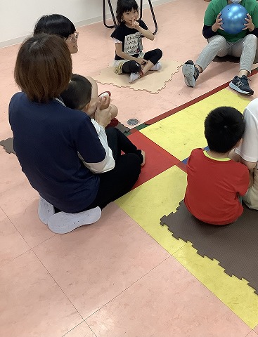 音楽が止まった時にボールを持っていた人が質問に答えるよ😄