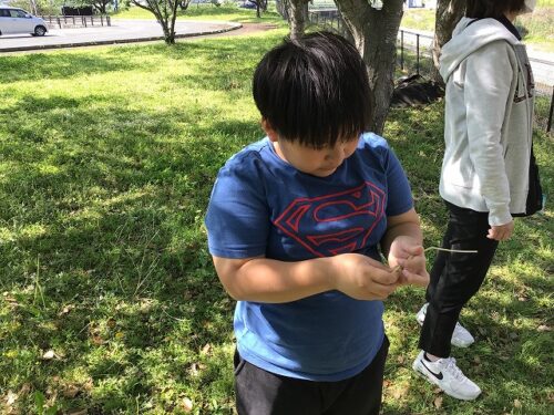 「こうやったら、よく鳴るよ」と草の切り込みを工夫する姿も見られました😊✨