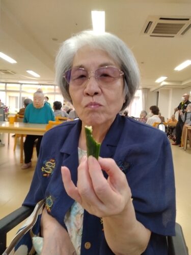 さわやか野方館 キューリ【野方館】 2025-06-13 2025-06-13 玄関前で育てているキューリが収穫出来たので ご利用者様に食べて頂きました😆 みずみずしくて美味しい〜上手に出来てるよね😁 と大好評でした‼️‼️‼️
