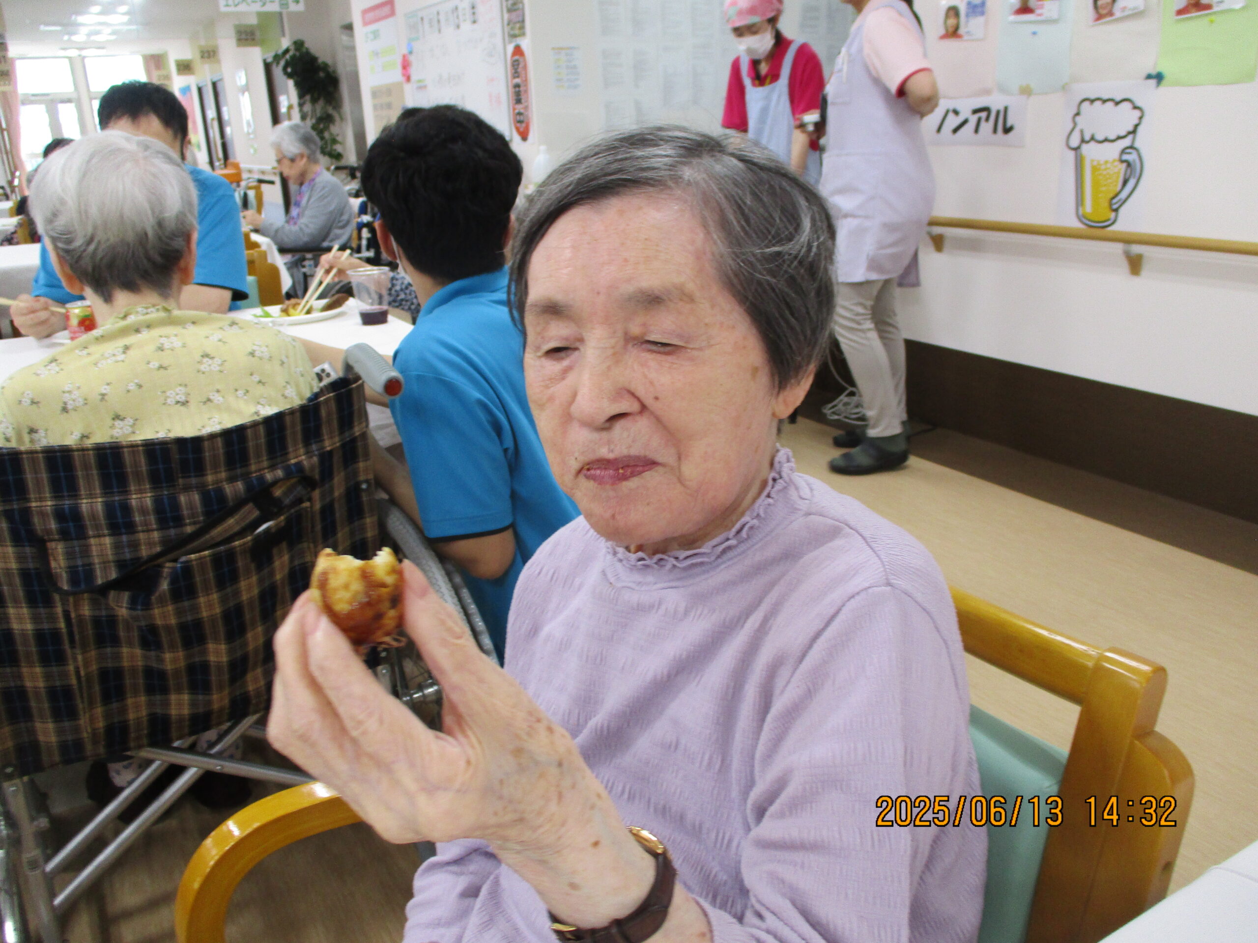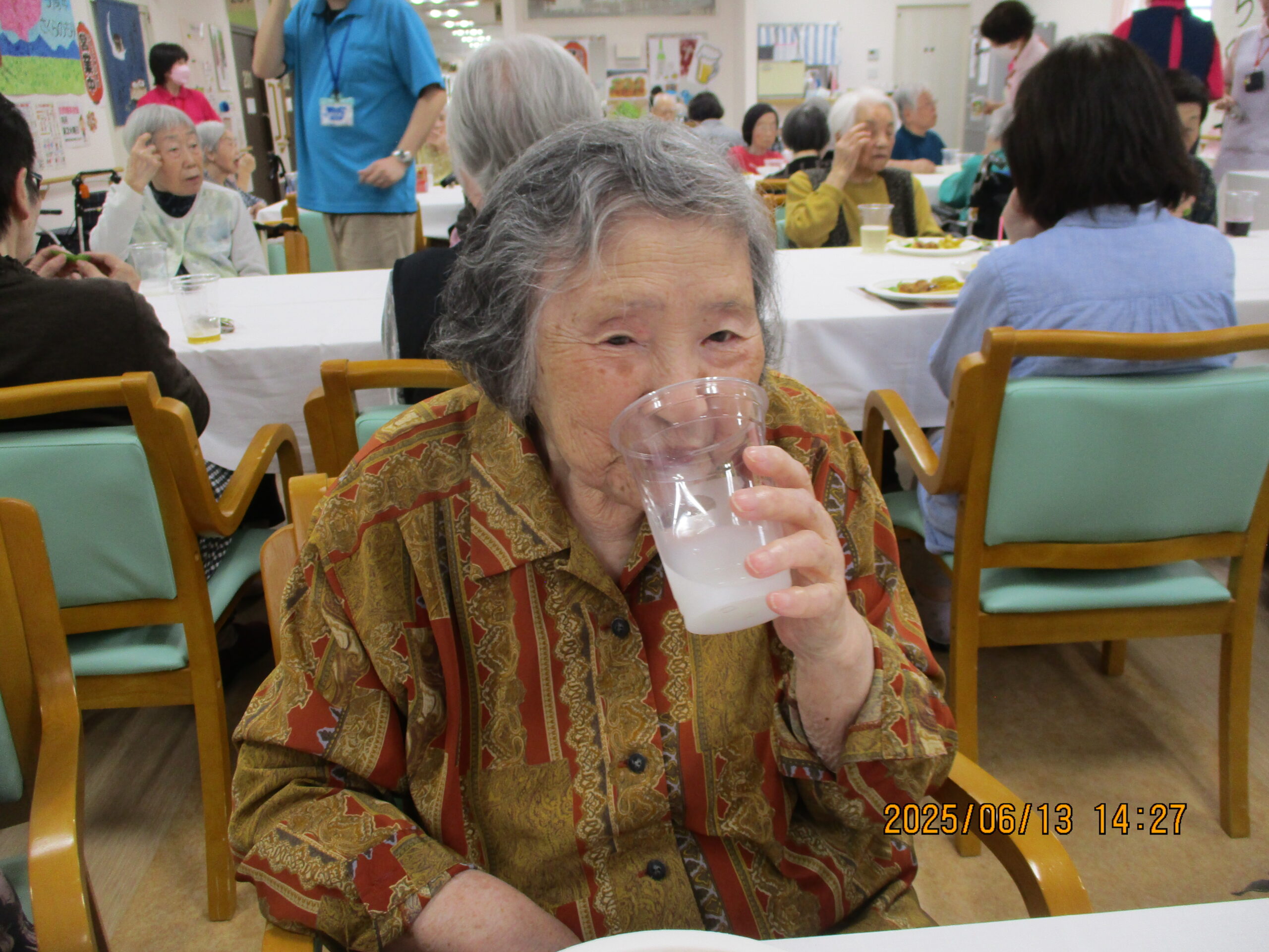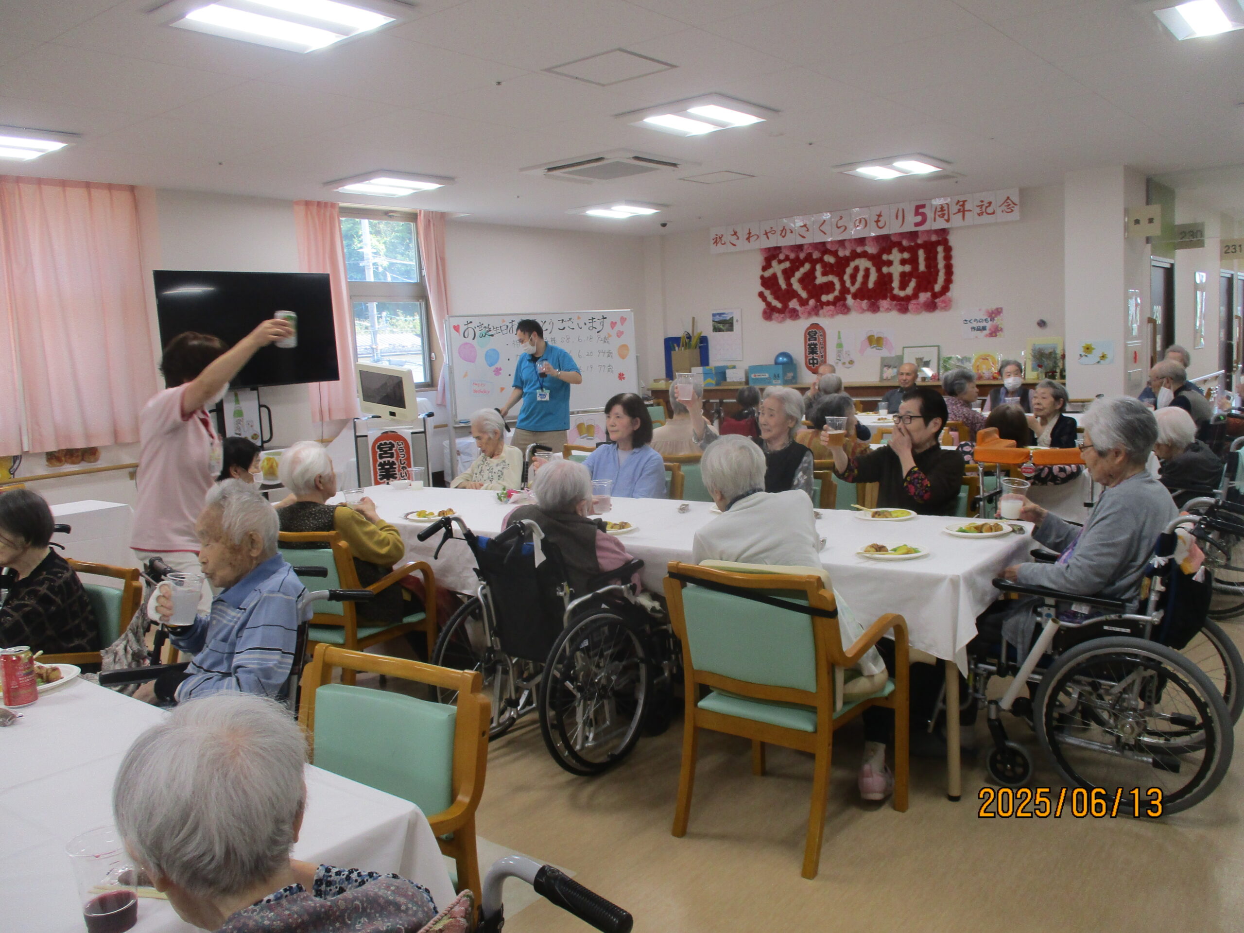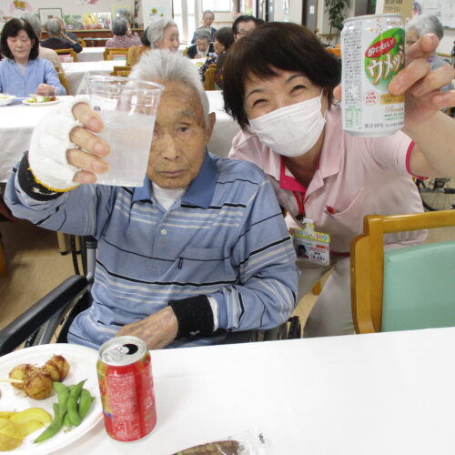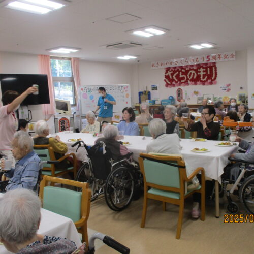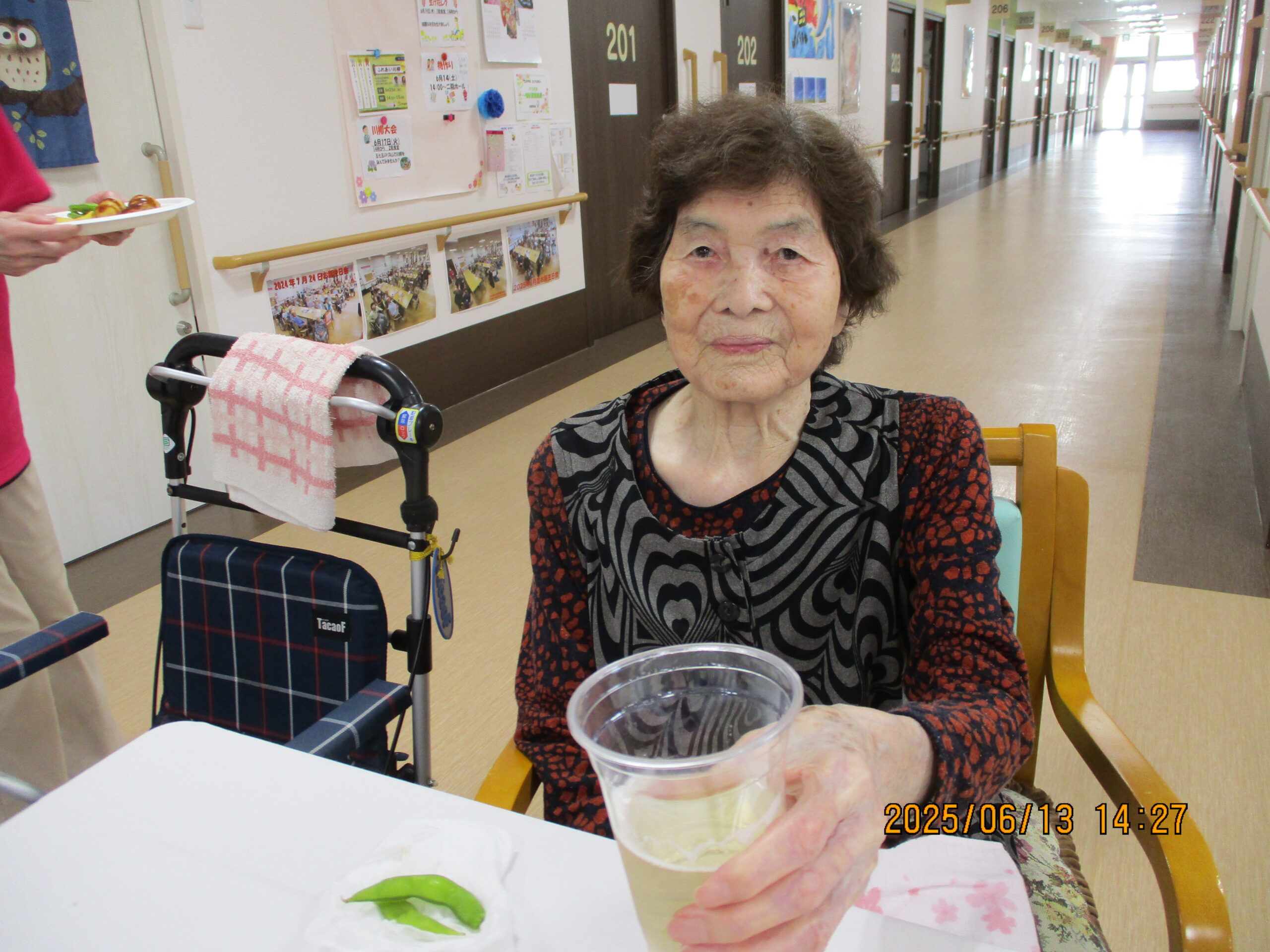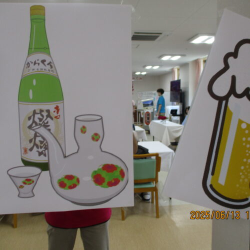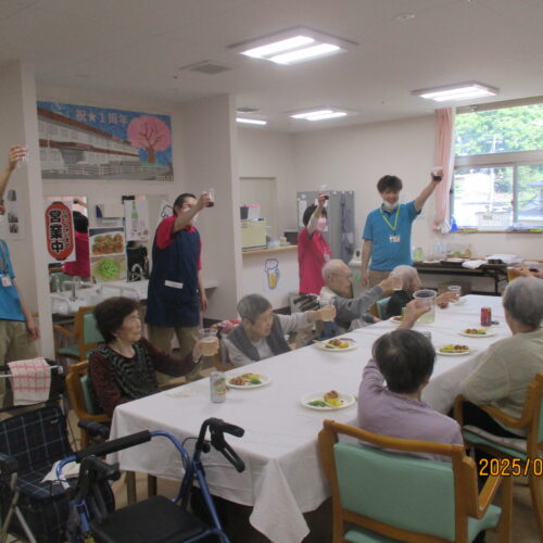 皆さん。こんにちは。今日のブログは昨日行われた誕生会レクの続きの様子です。誕生日会終わった後、父の日にちなんで居酒屋レクが行われました。