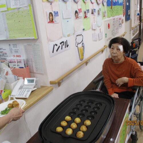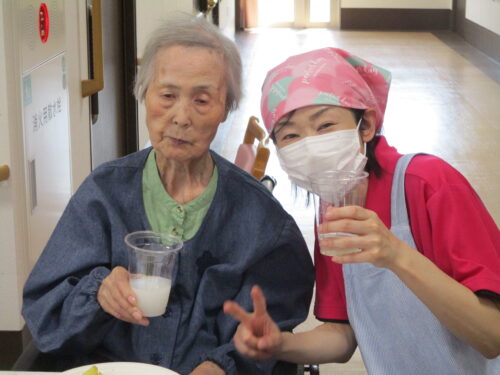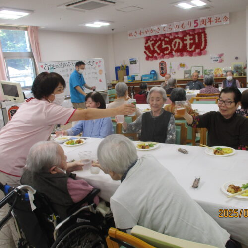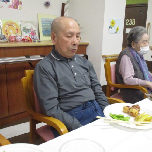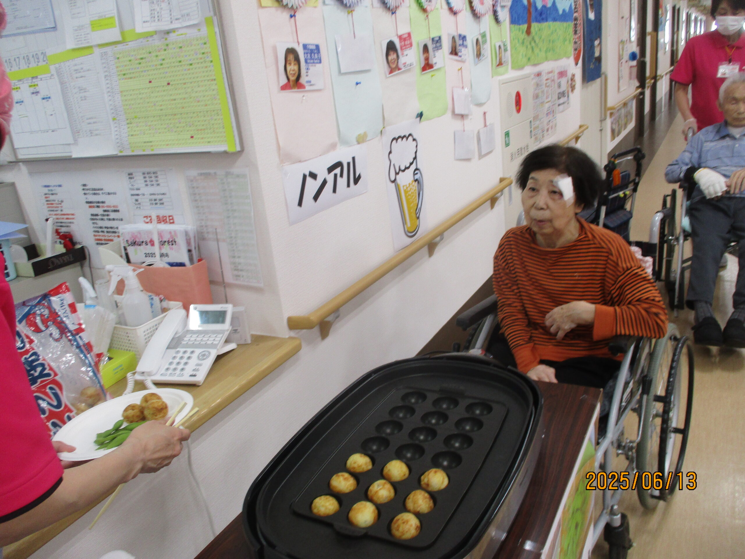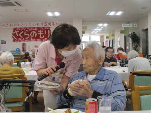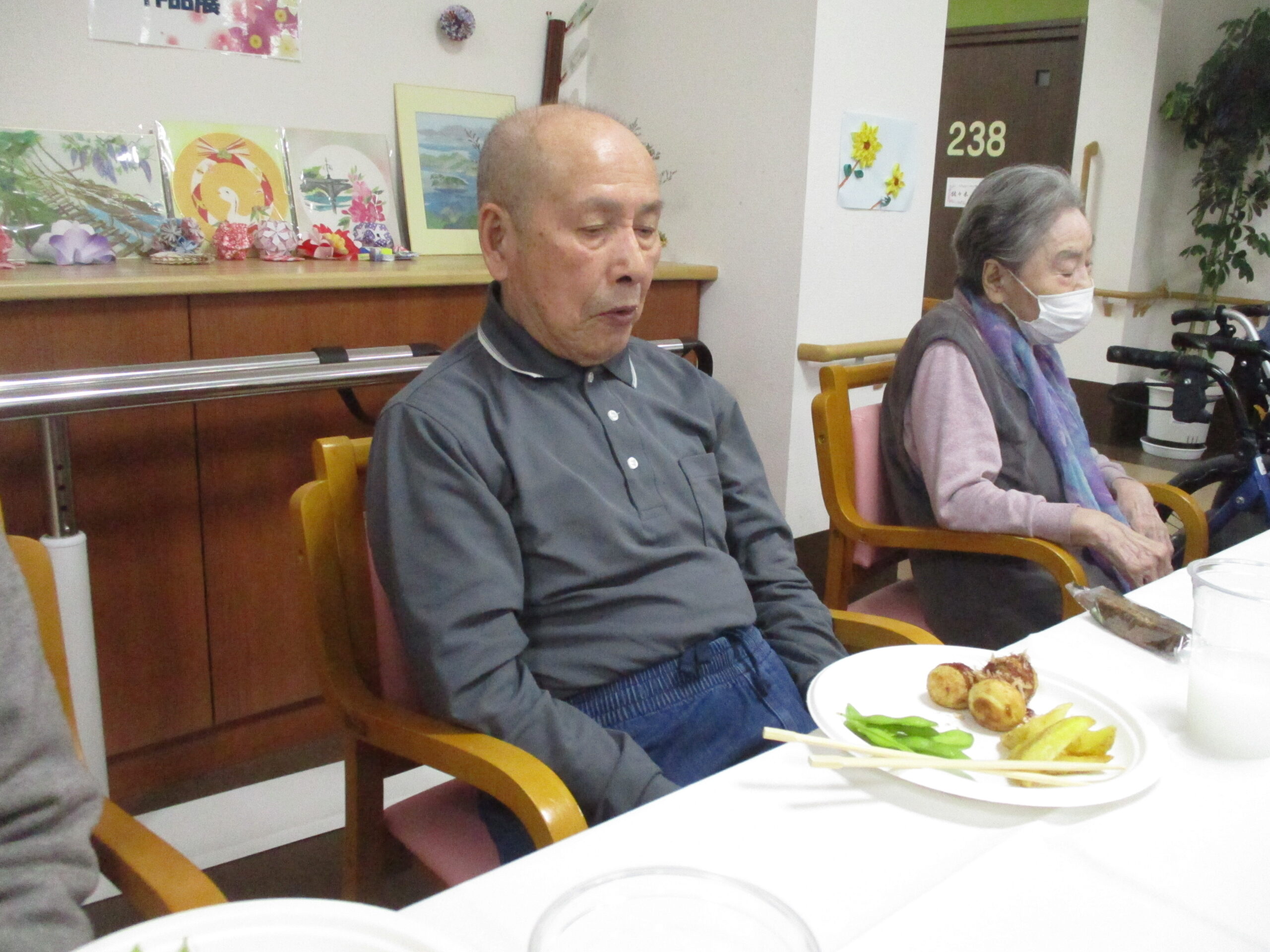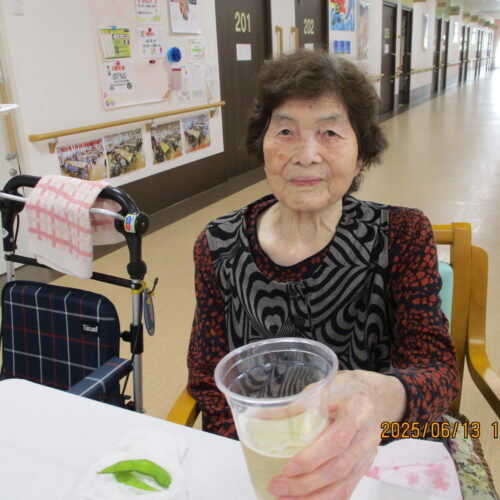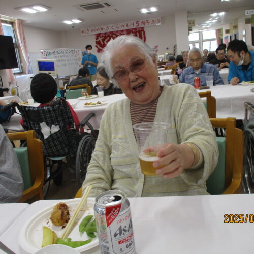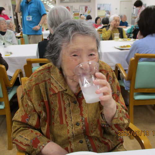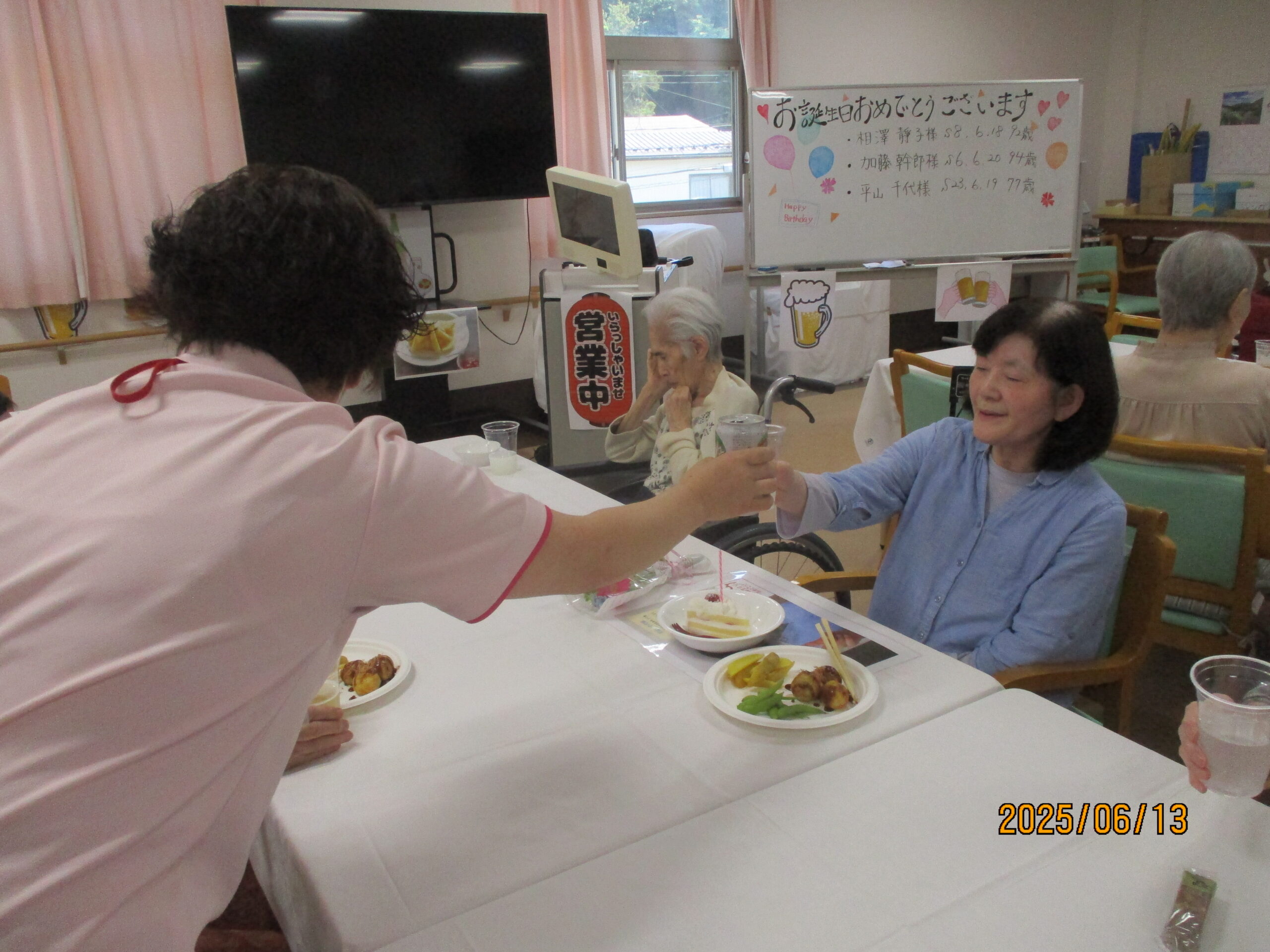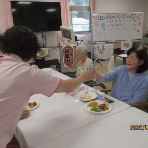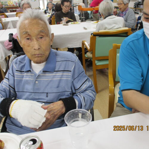 皆さん。こんにちは。今日のブログは昨日行われた誕生会レクの続きの様子です。誕生日会終わった後、父の日にちなんで居酒屋レクが行われました。