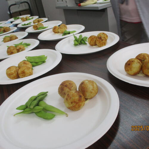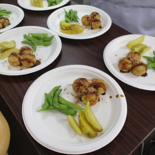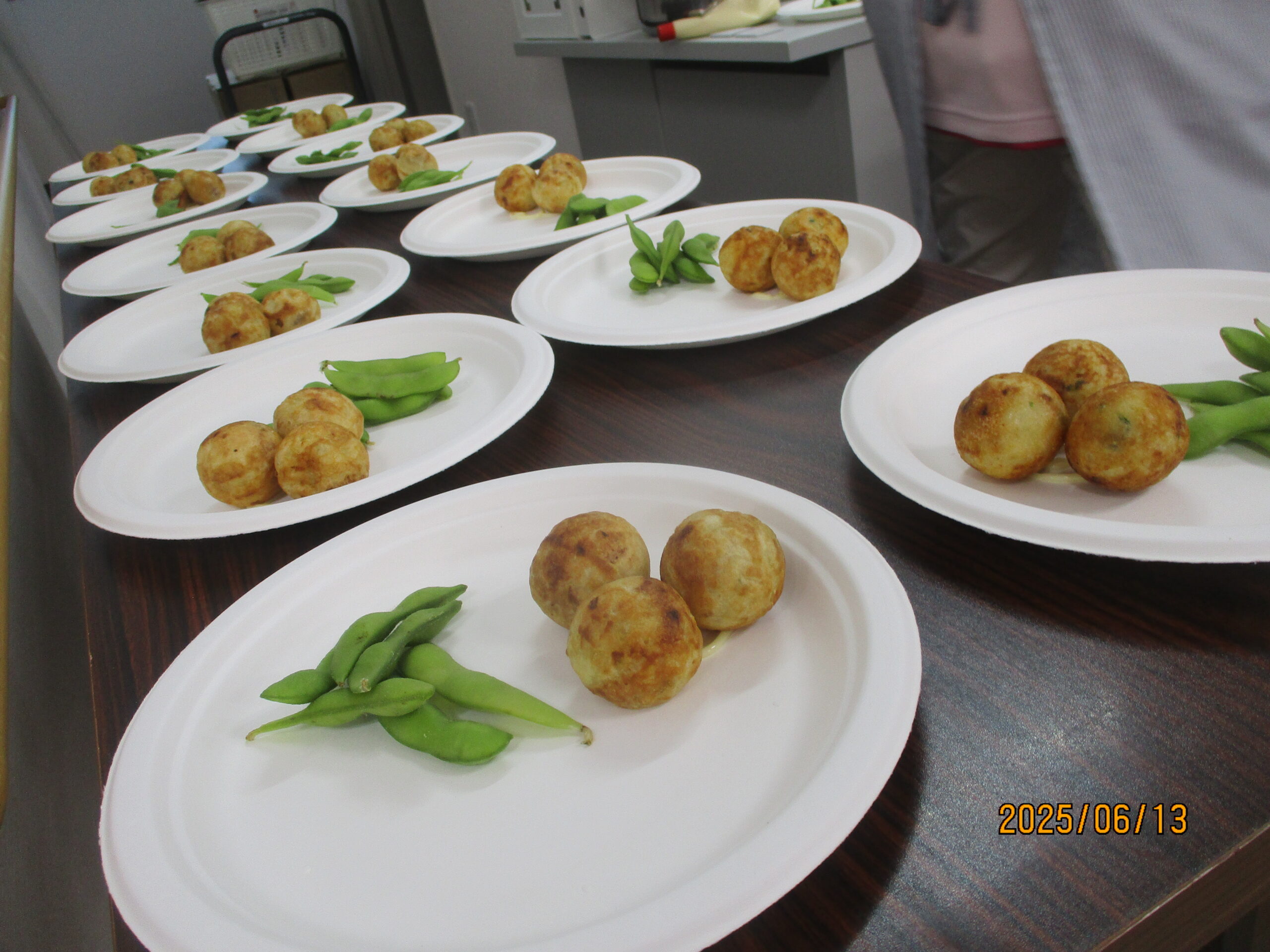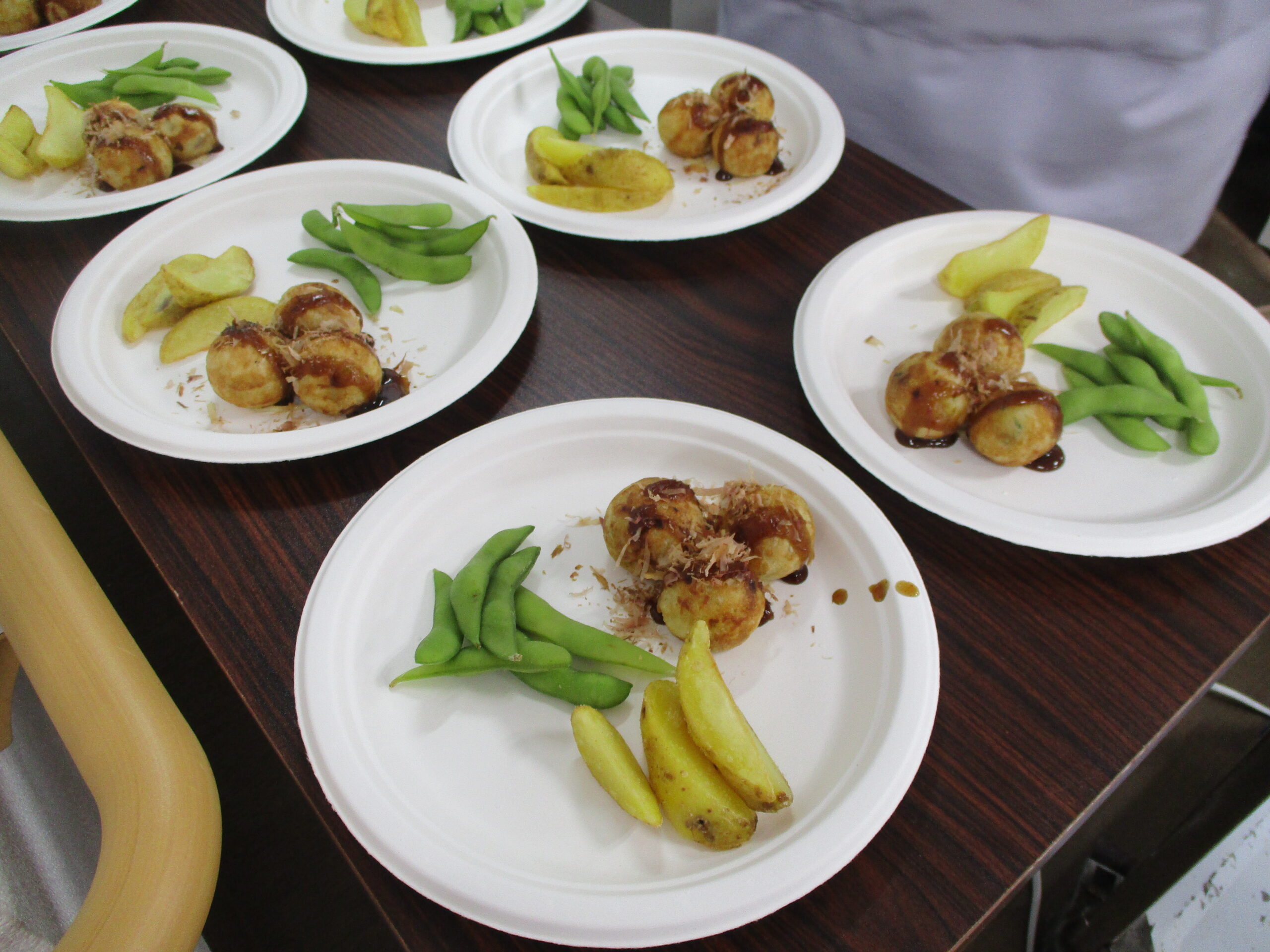 たこ焼き、フライドポテト、枝豆。どれも美味しそうですね。