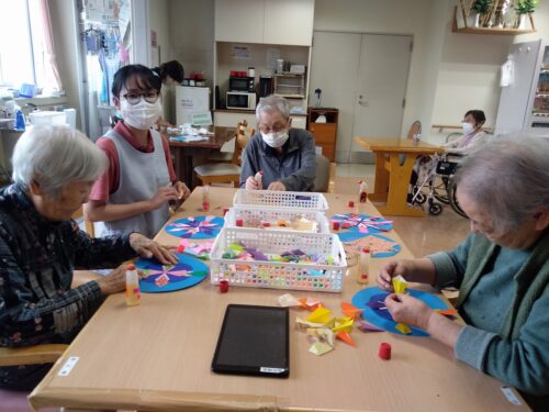 さわやか海響館 レクリエーション作品作り④ 2025-06-14 2025-06-14 こんにちは。さわやか海響館です。 本日は2階の入居者様とレクリエーションを行いました。 色鮮やかな花火が完成しました。2階の壁紙に貼ってます(*'ω'*) 来週は、高塔山にあじさいレクへ行く予定です♪