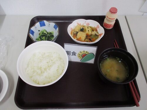 ご飯・厚揚げ野菜あん🥕・小松菜ピーナッツ和え🥜
