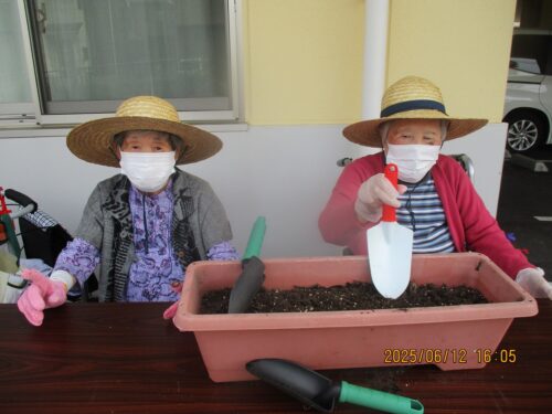 ご入居者様からは、土触るの久しぶりで気持ちがよかったと喜んでおられました。
