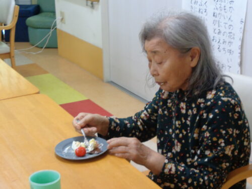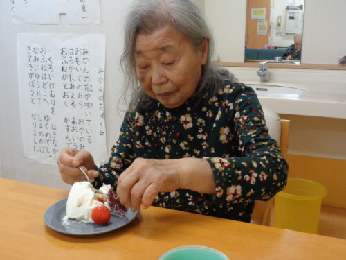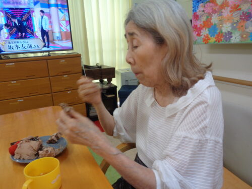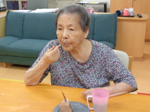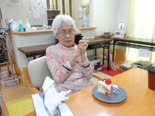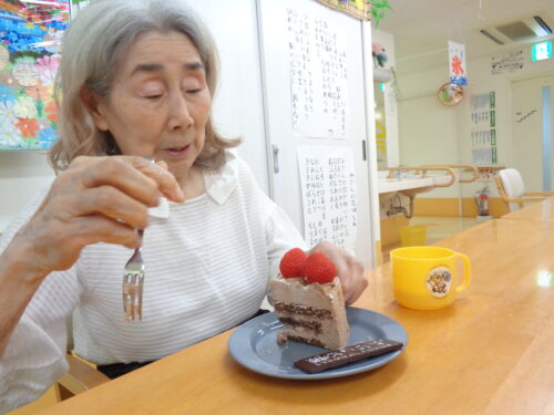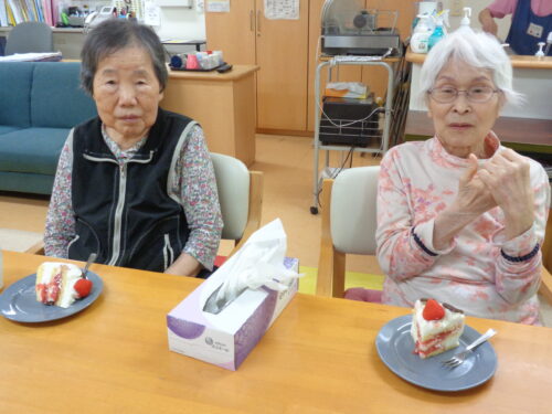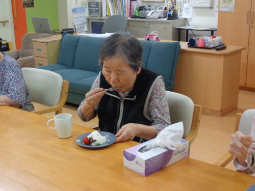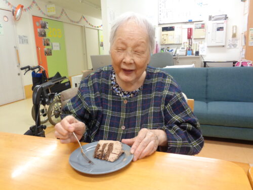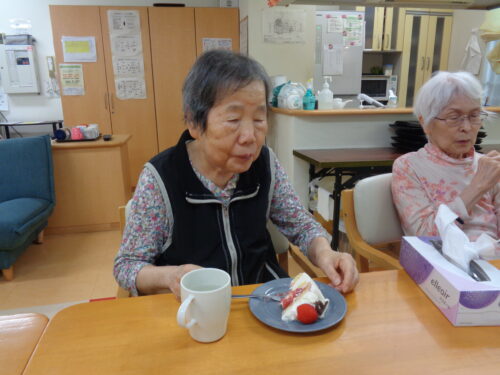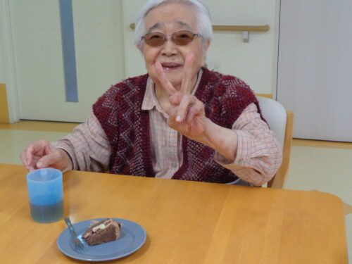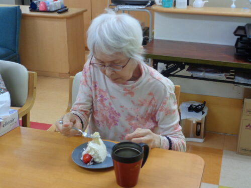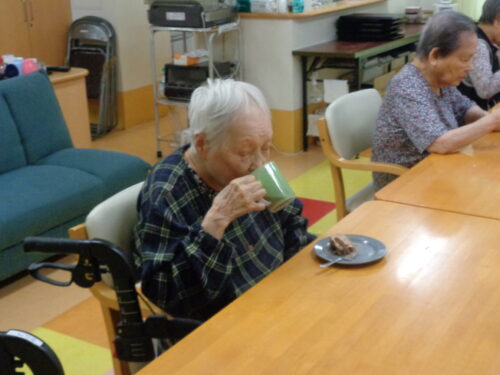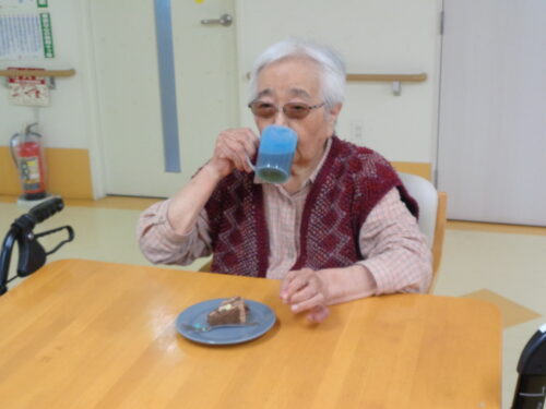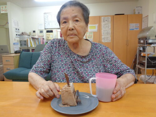 居室で休まれてる入居者様にもティータイムにケーキをお茶請けに出しました^^