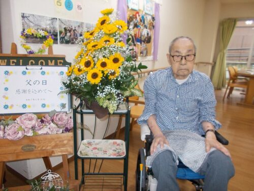 さわやかはーとらいふ西京極 ☆祝父の日☆ 2025-06-17 2025-06-16 15日の父日には、男性入居者様全員に日頃の感謝の気持ちを込め、ヒマワリのお花を贈らせて頂き、皆様で楽しくお祝いさせて頂きました。
