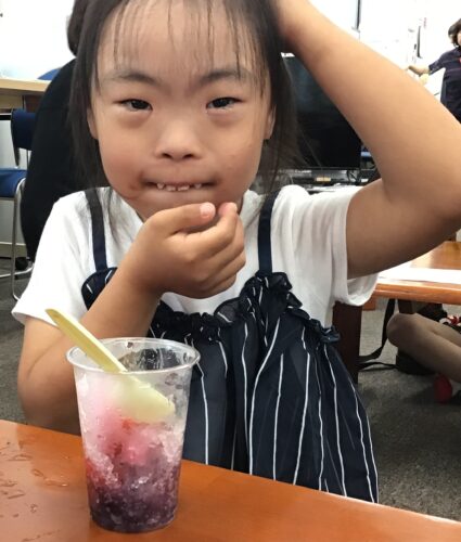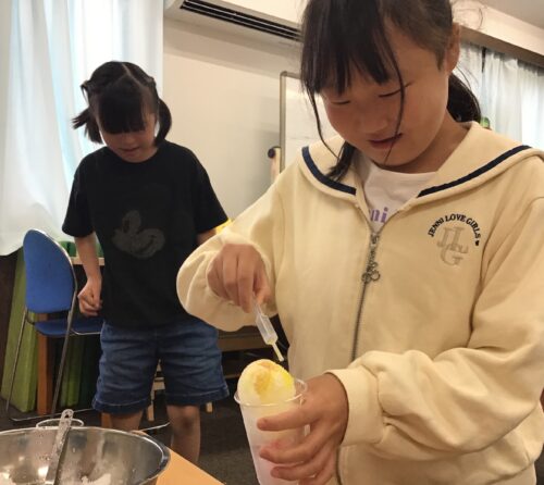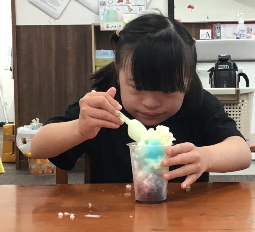 「うーーん なかなか吸えなぁい💦」と言いながら思い思いのシロップをかけていましたよ