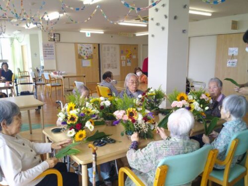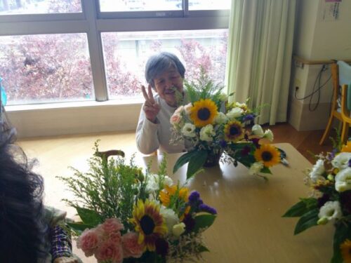 特定施設でもフラワーアレンジメント教室が開催されました。