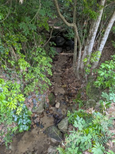今回は、水の通り道をふさがないように石を端に寄せたり、大きな木の枝を取り除いたり。