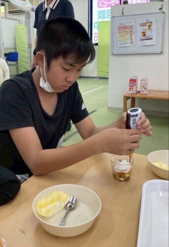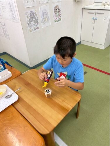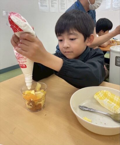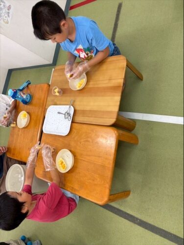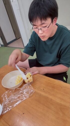 あかいわ館では、おやつレクでカステラケーキを作りました!