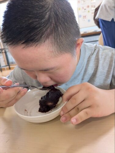 食べたことなくて初めは躊躇してしまう児童や美味しいと笑顔でモグモグ食べる児童、あんこはあまり得意ではないけど自分で作ったおはぎだからと挑戦してみる児童などさまざまでした☺️