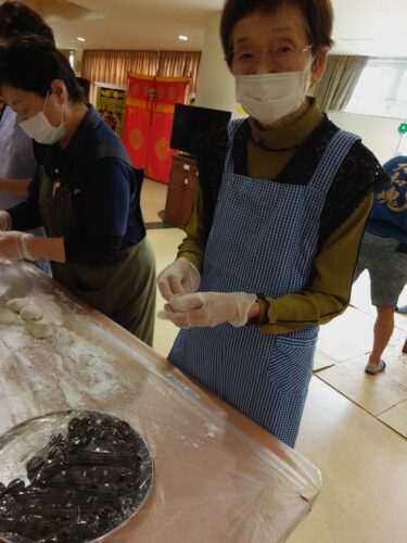 美味しそうな餡入り餅が出来上がりました\(-o-)/