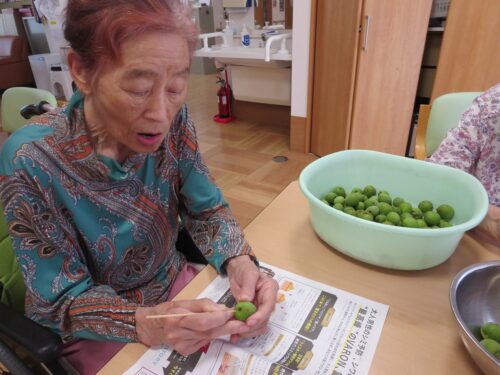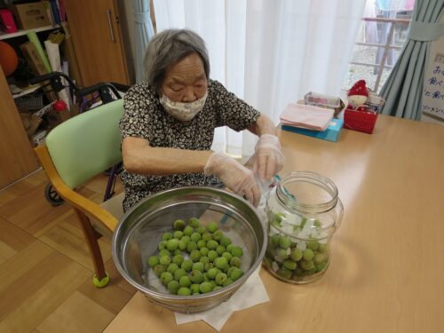 さわやかグループホーム なすしおばら すいせんユニットの様子 2025-06-21 2025-06-18 『梅ジュース』を作りたいと思います。 梅のヘタを一つ一つ丁寧に取って下さってます。 瓶に入れて氷砂糖をいれて・・・ おいしくなぁれ・・・ 出来上がりが楽しみです(*^_^*)