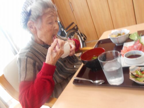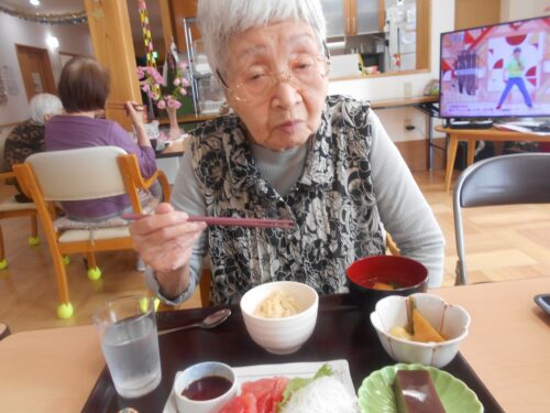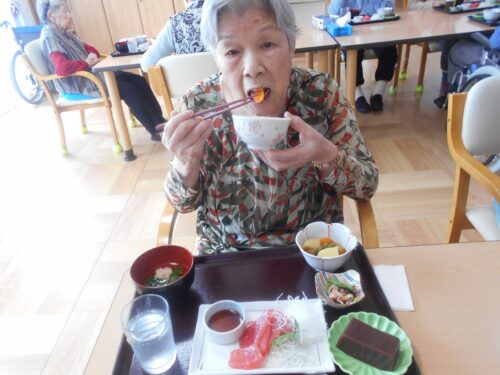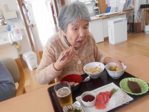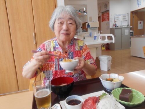 さわやかグループホーム なすしおばら つつじユニットの様子 2025-06-18 2025-06-18 『父の日』のお祝いにいつもより少しご馳走を 召し上がって頂きました!(^^)! 良い笑顔ですね(*^_^*) マグロのお刺身はやはり人気がありますねぇ。 皆さま喜んで召し上がって下さいました。 良かったです(≧◇≦)