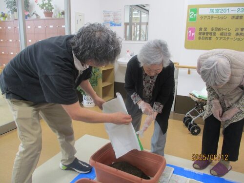 さわやか桜参番館 朝顔の種を植えました💕 【さわやか桜参番館】 2025-06-18 2025-06-18 こんにちは☆彡 さわやか桜参番館です🌈 6月12日の午後、 朝顔の種植えをしました! 入居者様お二人に お手伝いをお願いして、 スムーズに種を植えられました🌱 今年も大きな朝顔が 咲きますように✨ 担当:家でも何か植えたい斉藤✨