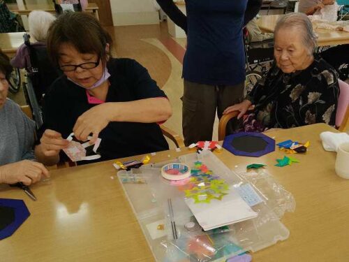 さわやか柏館 7月に向けて壁飾りを作りました (さわやか柏館 千葉県柏市介護付き有料老人ホーム) 2025-06-19 2025-06-19 6月も残り半分となりました。 柏館の三階では7月に向けて壁飾りを作りました! 七夕モチーフです。 担当 松本