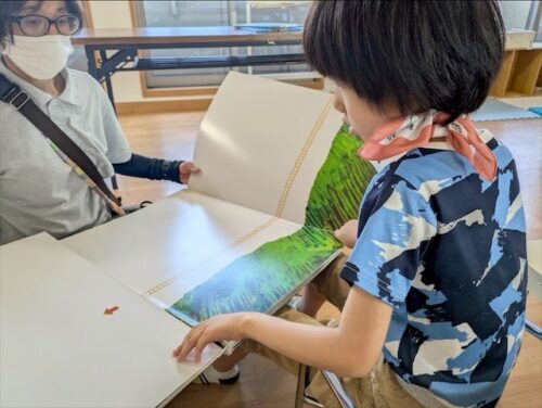 みんな実際に触ったり、めくって指で文字を追ったりして楽しみました🤗