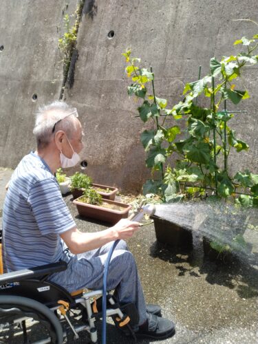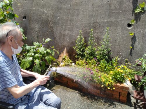 ご利用者様に水撒きのお手伝いをして頂きました😊