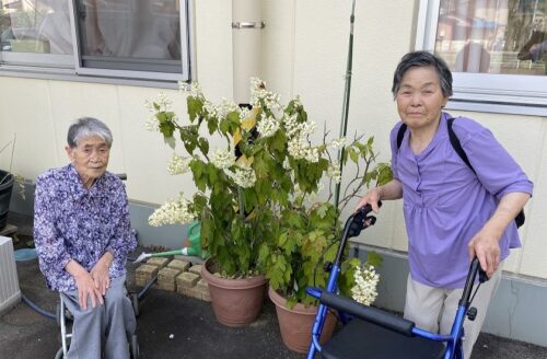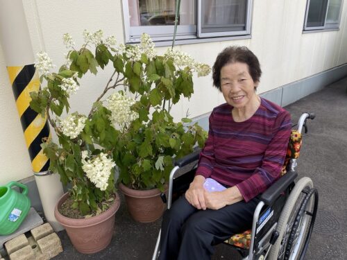 ご利用者さまはカシワバアジサイを見て「これアジサイですか」と不思議そうに眺めていました!