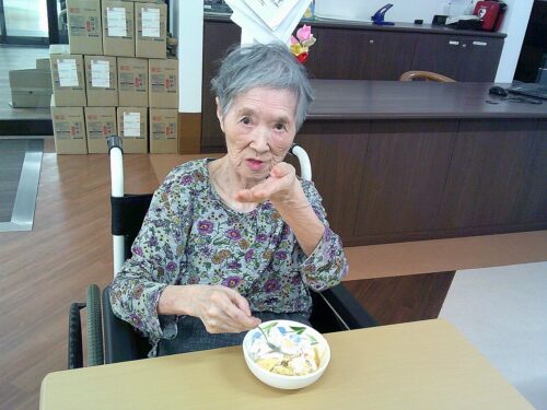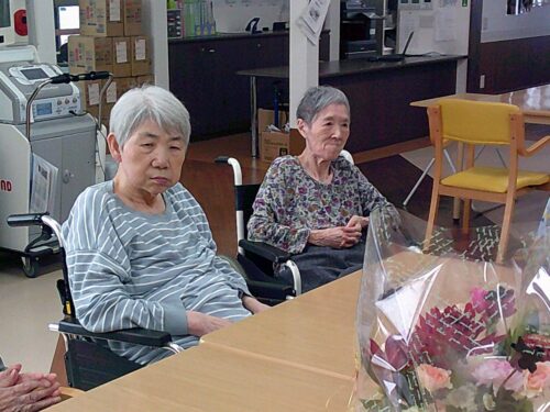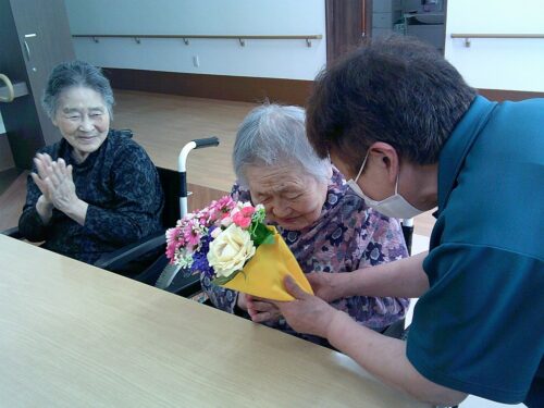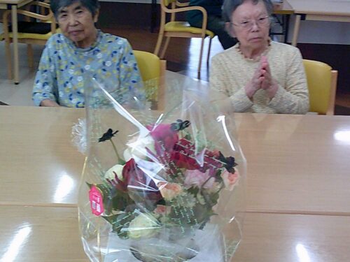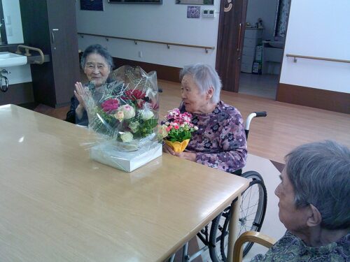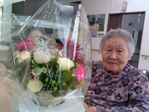 ご家族様から届いたお花を前に 笑顔がはじけます