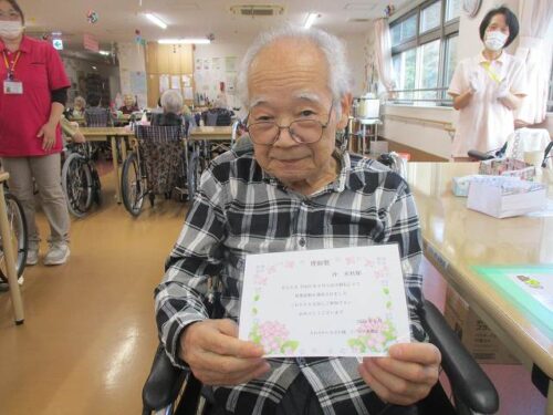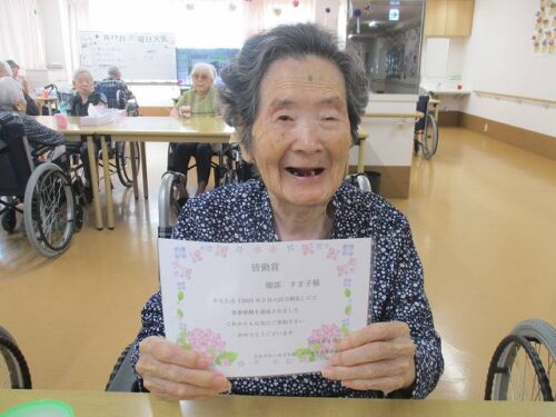 さわやかいなざわ館 皆勤賞レクパート2♫【さわやかいなざわ館】 2025-06-23 2025-06-23 皆様、こんにちは🌞 活力朝礼皆勤賞🎶 本日も、3階での皆勤賞レクの様子をお伝えします。(^^♪ 毎日の活力朝礼参加おめでとうございます!💗 職員の手作りおやつを食べて 明日からも、活力朝礼に参加して体調を整えてゆきましょうね。👍 担当:鈴鹿