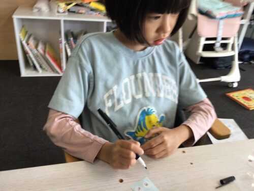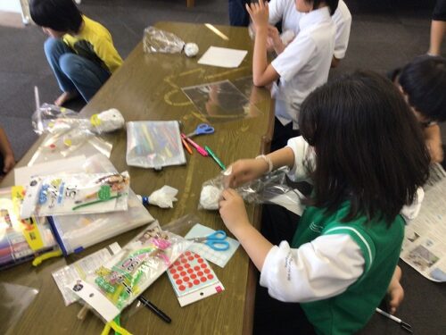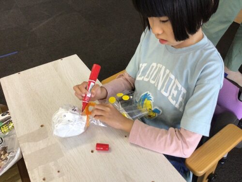 材料は、ラッピングの袋・マジック・シール等を使っています