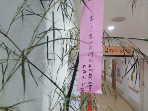 さわやかあま館 七夕にむけて・・・。 2025-06-25 2025-06-25 こんにちは♪ さわやかあま館です。 さてあま館では7月7日にむけて短冊の願い事を利用者の皆さんに記入してもらいました~。 みなさんいろいろな願いごとがありました。 叶うとよいですね~ 素敵な七夕をお過ごしください☆ 以上 あま館からでした。