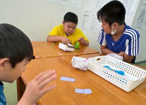 浮き輪も作りました。丸く切って、白い線を貼ります🛟