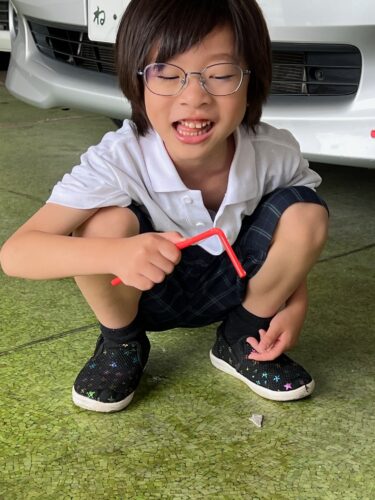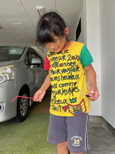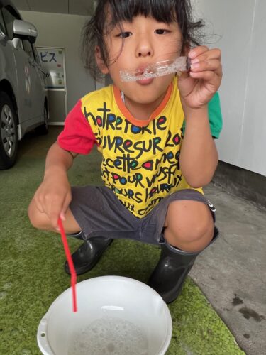 雨が降っていたので駐車場でシャボン玉をしました‼