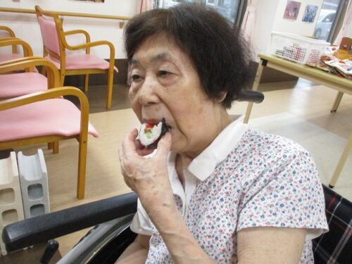 購入したお菓子や巻きすしを早速食べておりました🍣