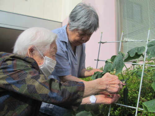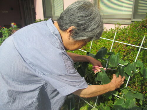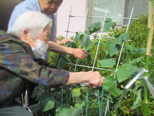 農家さんだった入居者様がサクサク収穫されていました(笑)