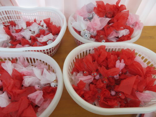 二日間作って、大・小こんなにたくさんの金魚たちが出来ました。