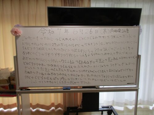さわやか室蘭弐番館 3階 26日活力朝礼♪ 2025-06-27 2025-06-27 皆様こんにちは♪ 昨日の様子をお届けします 9時からラジオ体操です 日付と天気の確認後は頭の体操 しりとりを行いました いつもお手伝い有難うございます 素敵な一日になります様に☆