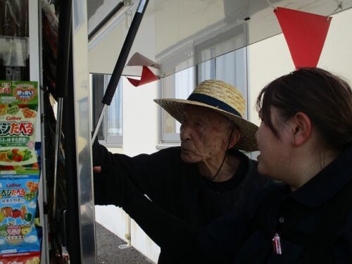 移動販売の車が来る前から玄関前に皆様が・・・・・