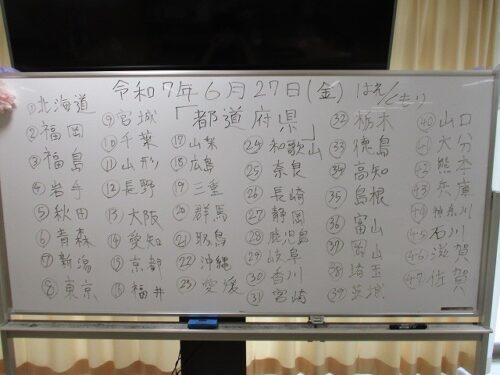さわやか室蘭弐番館 3階 27日活力朝礼♪ 2025-06-28 2025-06-28 皆様こんにちは♪ 昨日の様子をお届けします 一日のスタートはラジオ体操です 続いて頭の体操 47都道府県お答え頂きました 時間内にコンプリートです 賑やかな一日になります様に☆