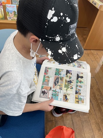 図書館ではそれぞれにお気に入りの本を見つけてたのしみました。