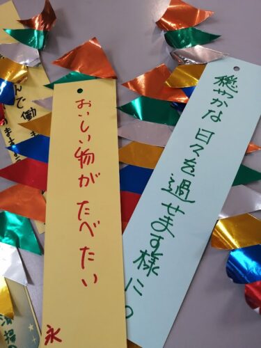 さわやかパークサイド新川 暑くなり 2025-07-01 2025-07-01 こんにちは☀ パークサイド新川です。 梅雨も明け、せっせと七夕飾りをつくっております。 ご入居者様にもお願いし、短冊も続々と。 飾り付けが楽しみです♡