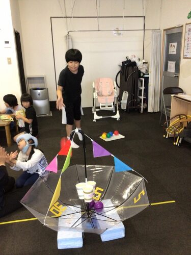 今回は、「パラソル玉入れ」の活動をご紹介します😊