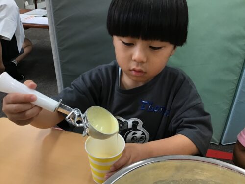 注ぐ道具が大きいから難しいよ(>_<)こぼれちゃった!