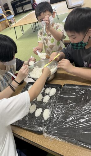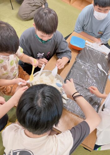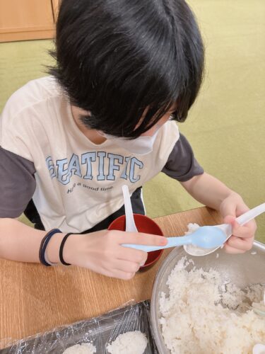 コーンマヨやツナマヨ、納豆など各種類に必要な材料を混ぜての具材の準備しました👏