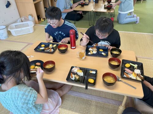 この日がお誕生日会であり、お誕生日の児童からの希望で「お寿司」があがったので、