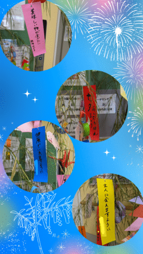 さわやか海響館 七夕の準備が整いました 🎋🌟🎋 2025-07-02 2025-07-02 前回のブログで七夕準備をしていると投稿しましたが すてきな七夕飾りができました🌟😆 皆さまの願い事をご紹介します✨🤗 色々な願い事がありますね🌟 七夕飾りを前に記念撮影☺️ 仲良しの記念撮影でした❗🥰 🐸楠田🐸