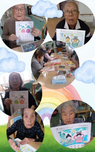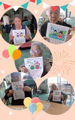 皆さま一緒に7月のカレンダーの色塗りを行いました❗
