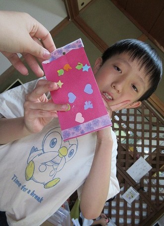 留めた後はペンで自分の名前、願い事を書いていきます。