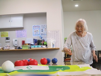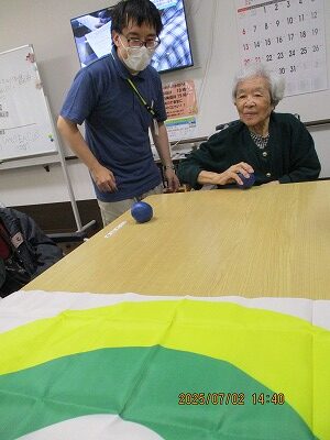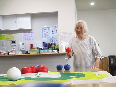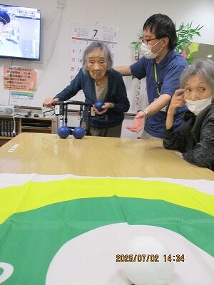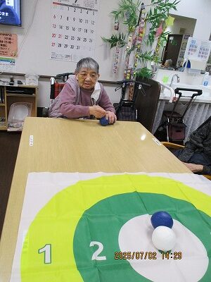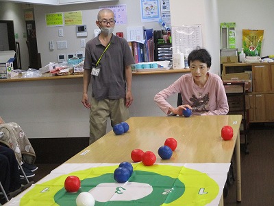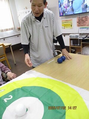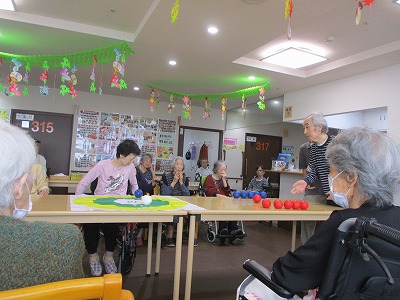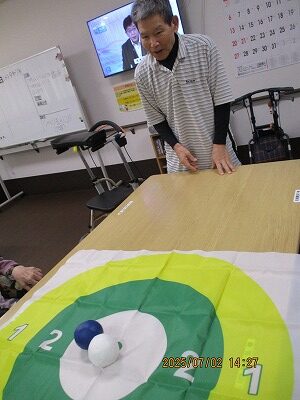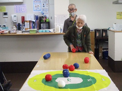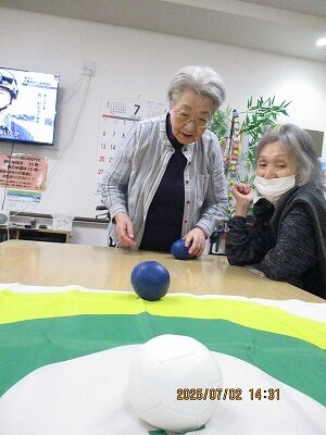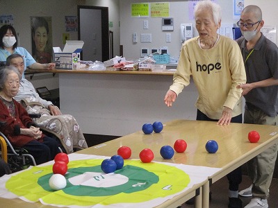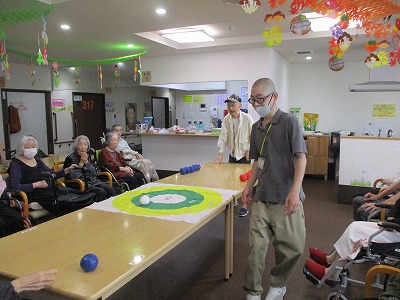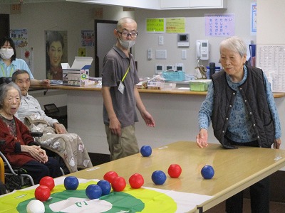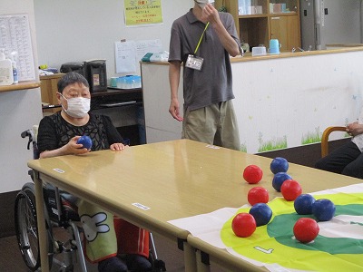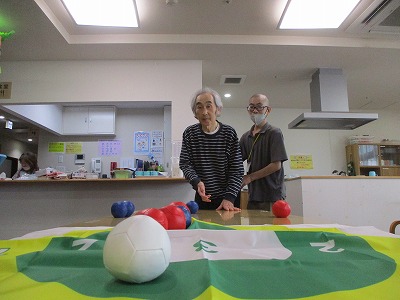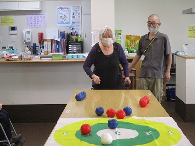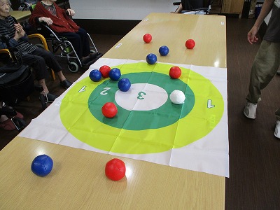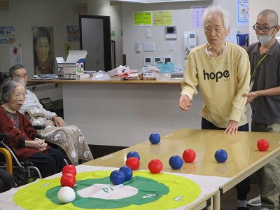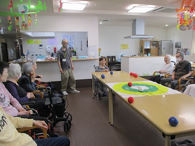 職員も入居者様も皆初めてのボッチャでしたが