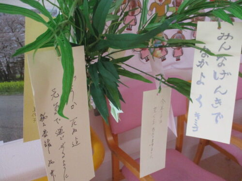 各フロアには笹にたくさんお願いごとを書いていただいた短冊を下げ、飾りつけを行っております💖