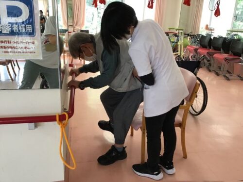 こちらの方も起立訓練をされていますが、座る途中でキープして負荷をかけています✨