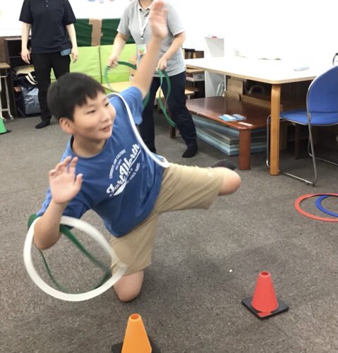 子どもたちは、飛んでくるフープの速さや高さを瞬時に判断し