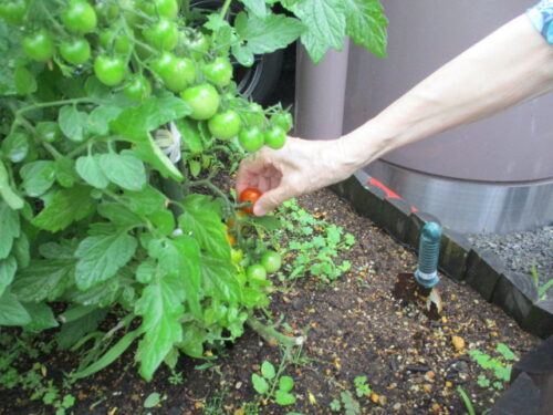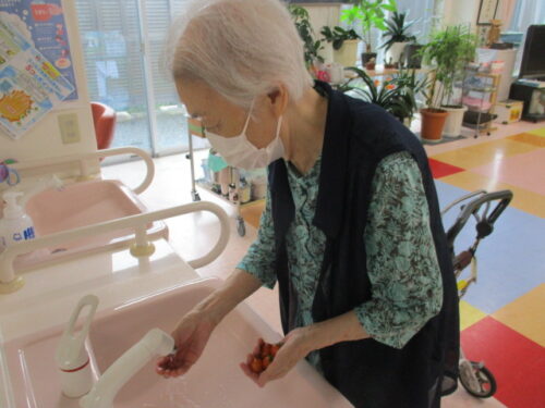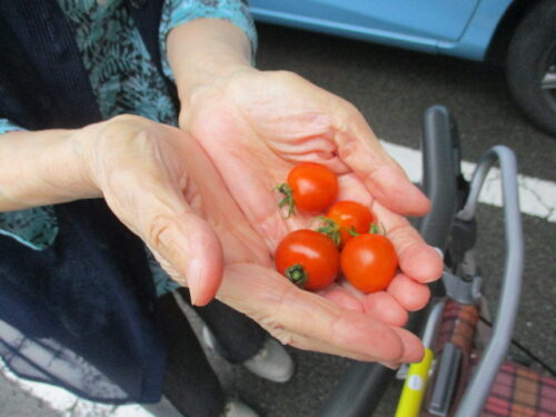 成長中のミニトマトが赤くなっていたので髙橋様と一緒に収穫しています!